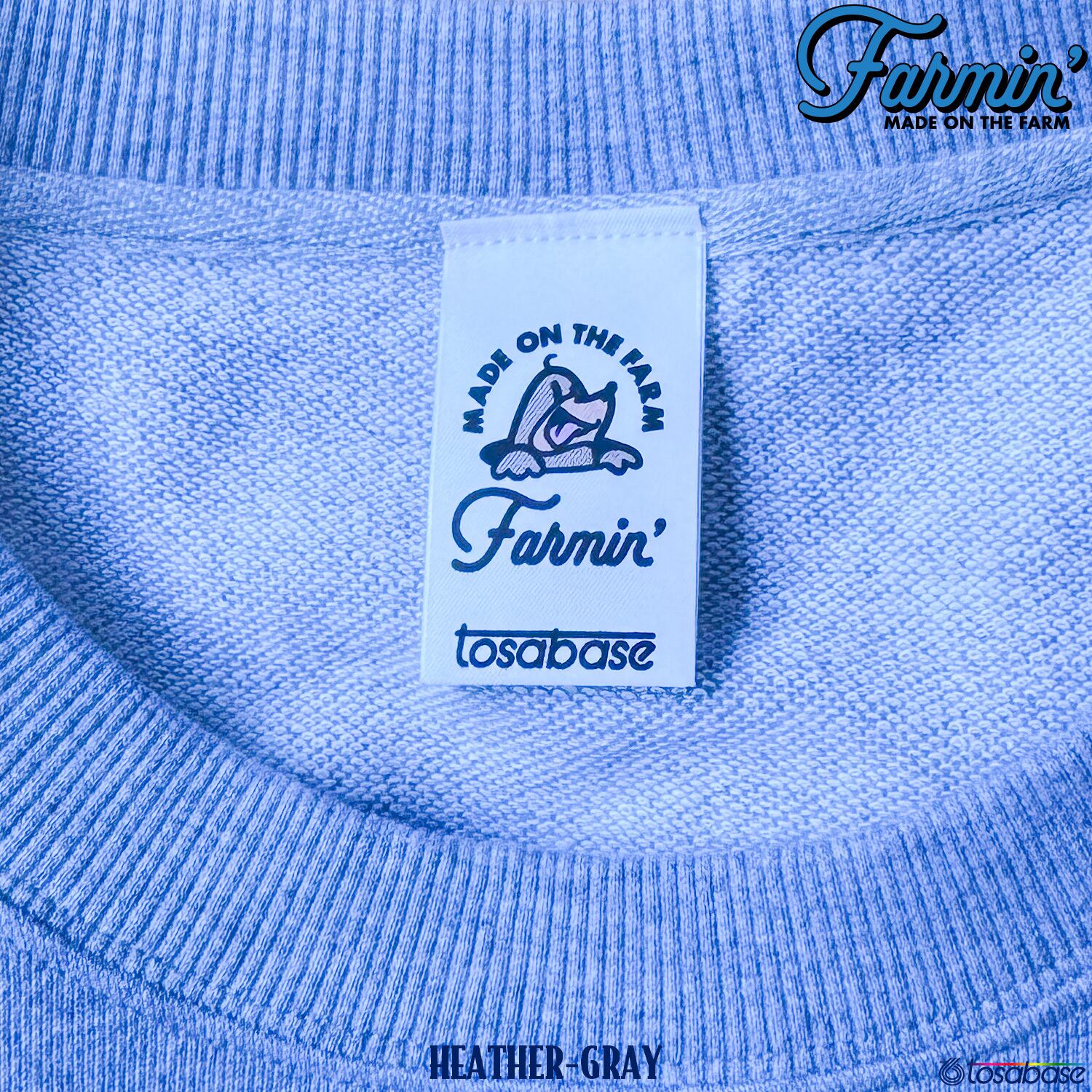 前面にFarmin'のロゴと、メインキャラクターである農夫のティオとモグラのルナールが大きくプリントされ、背面にはキャッチコピーである「MADE ON THE FARM」をプリントしています。